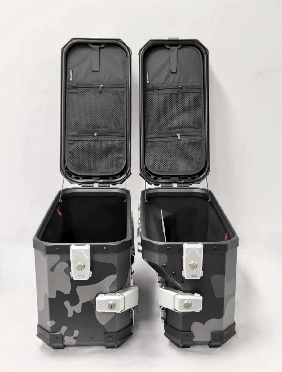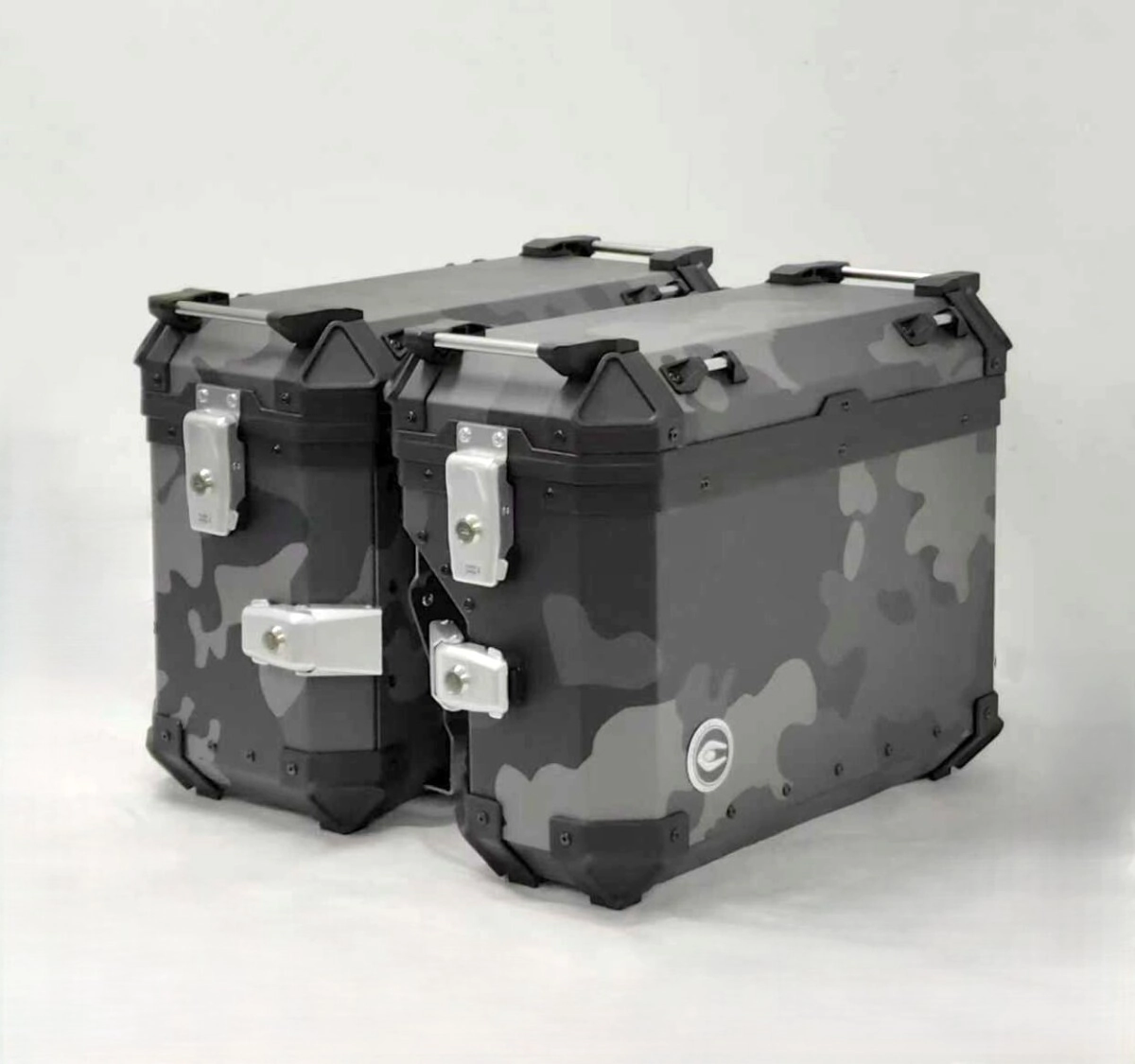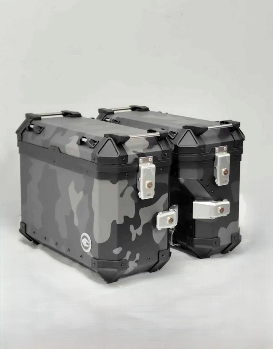TOP CASE 38L 1 S SHAPE RIGHT + 1 NORMAL LEFT DARK CAMO ALUMINIO COOCASE