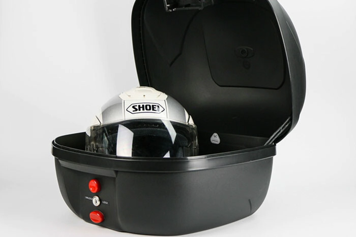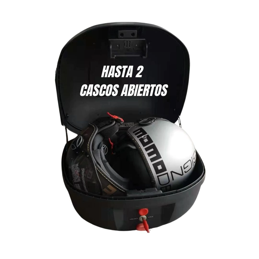 Una top case de 40 litros sin problemas para guardar dos cascos abiertos.