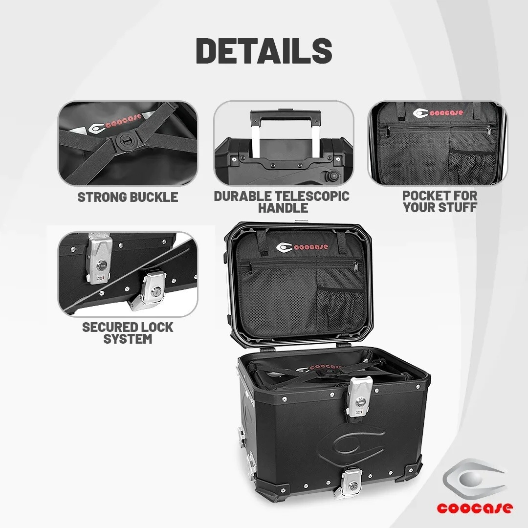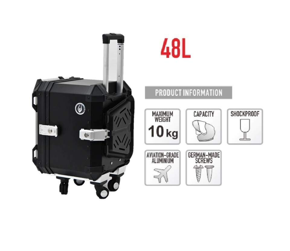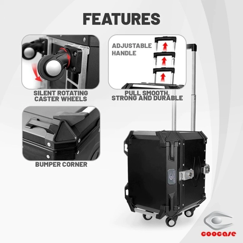 TOP CASE BAULERA 48L VALIJA Y RUEDAS EXTRAIBLES COOCASE ALUMINIO