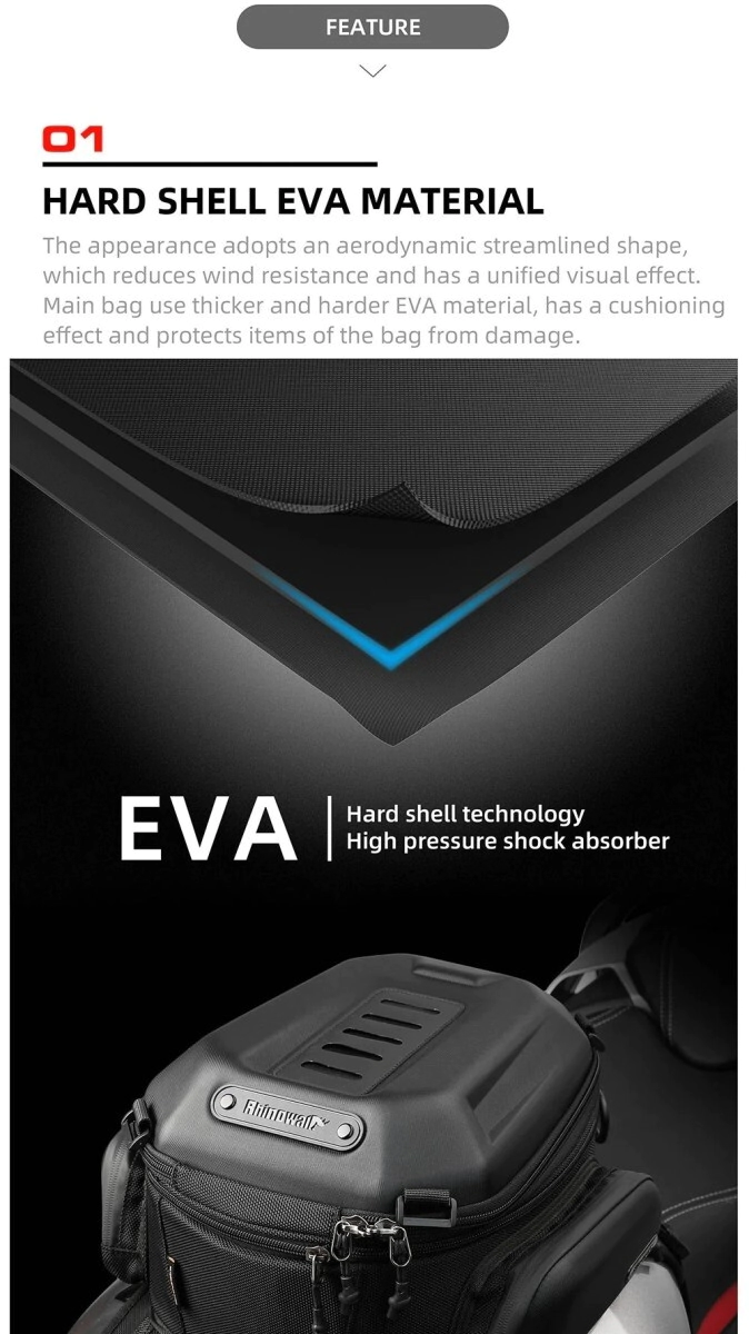 -Construcción duradera de EVA: Fabricada con material EVA grueso y endurecido, esta bolsa ofrece una absorción de impactos y amortiguación excepcionales para proteger tus pertenencias, ideal para motociclistas que buscan una bolsa de tanque de motocicleta robusta que resista el uso diario.