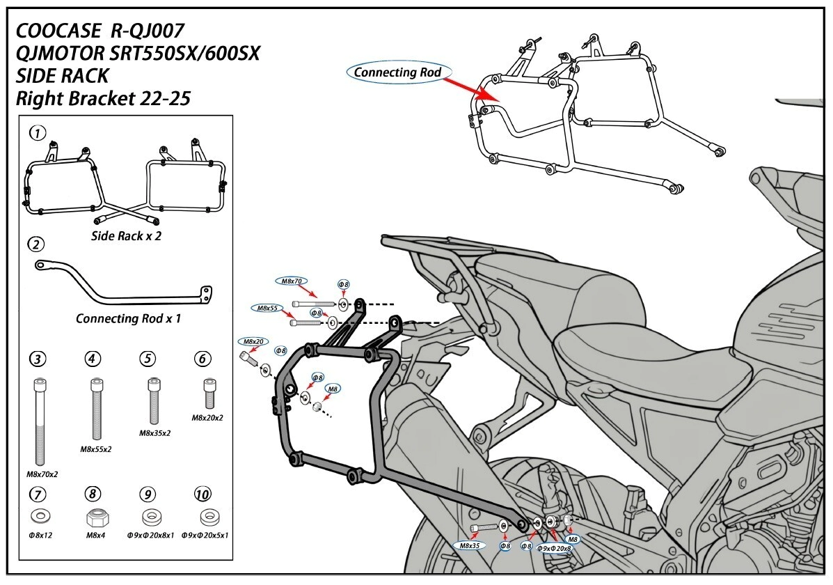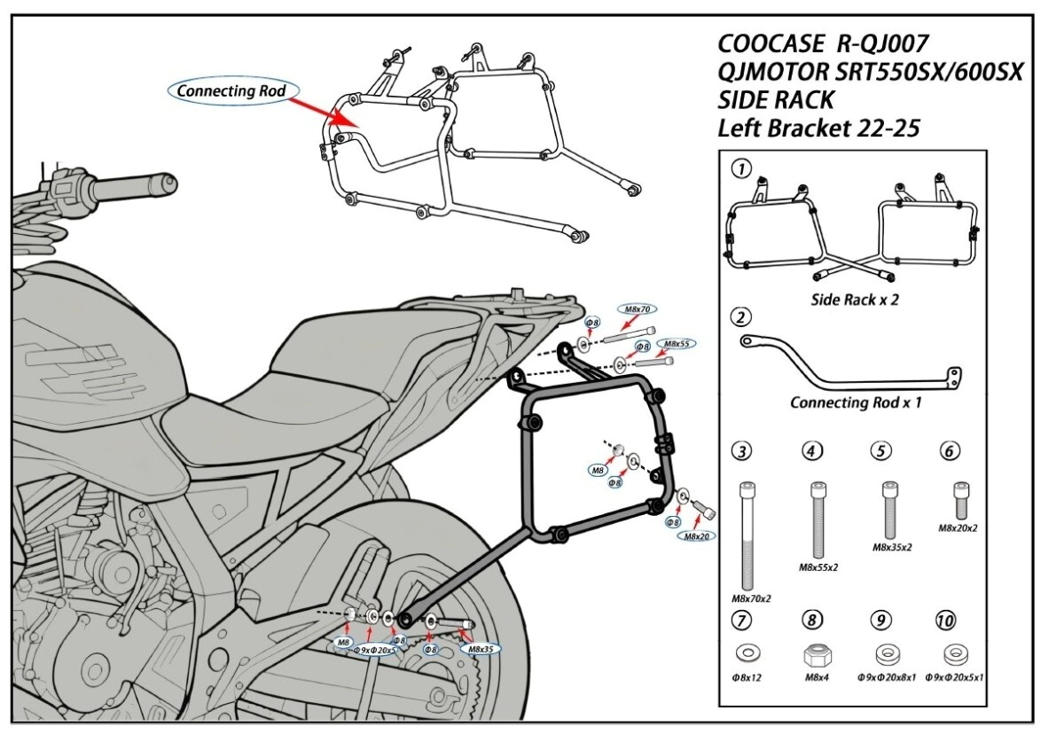 SOPORTE DE ALFORJAS QJMOTOR SRT 550SX/600SX 22/25 COOCASE