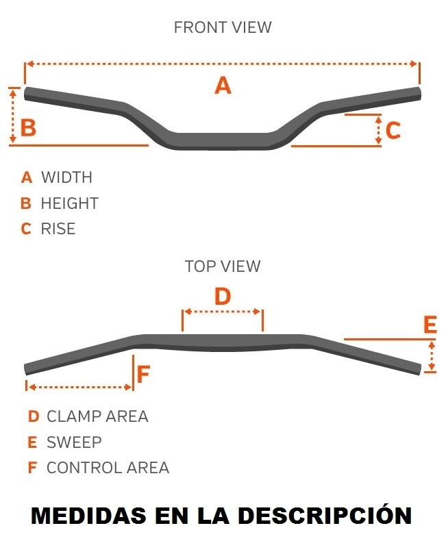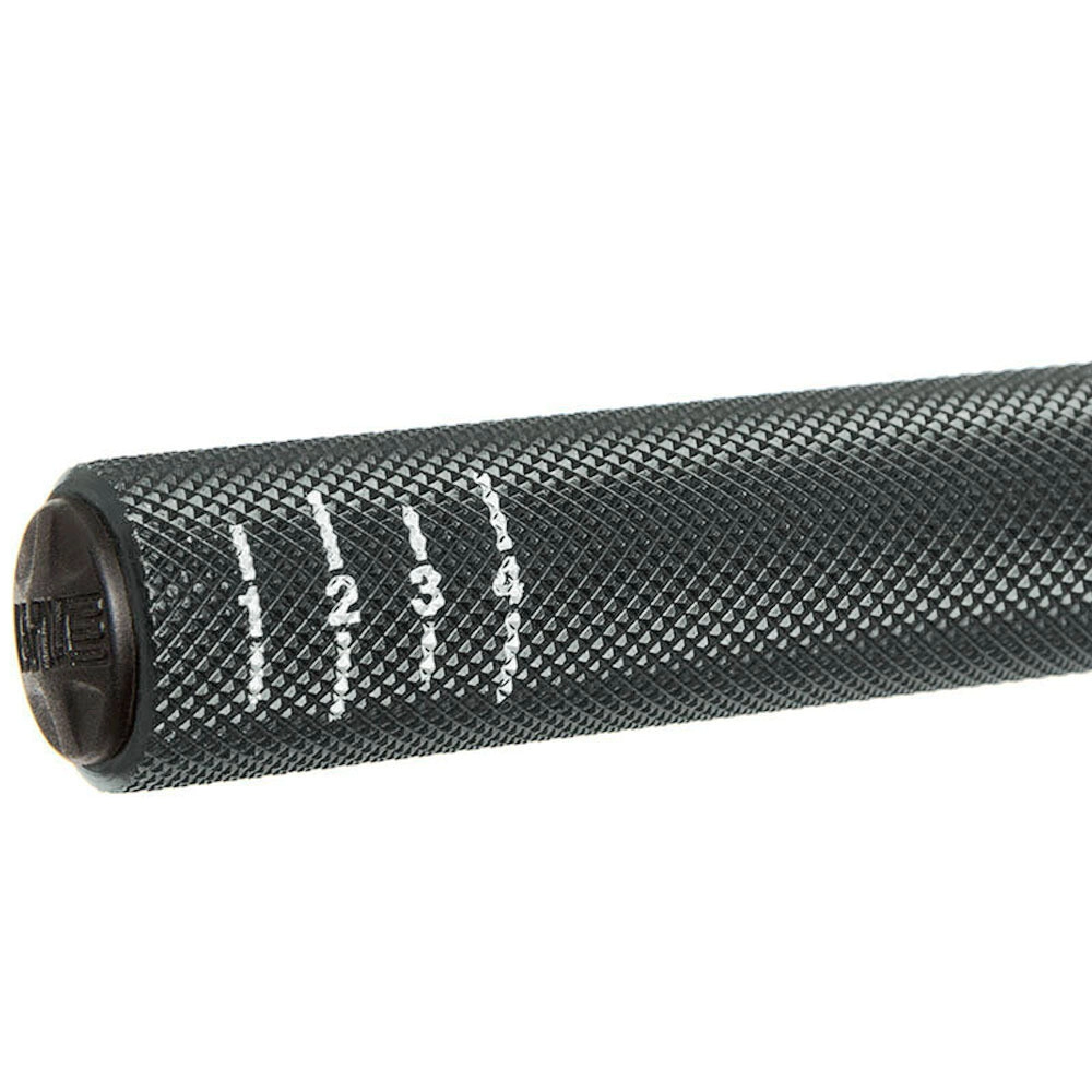 Diámetro sobredimensionado de 1-1/8" en la zona de sujeción, que se reduce a 7/8" en los extremos.