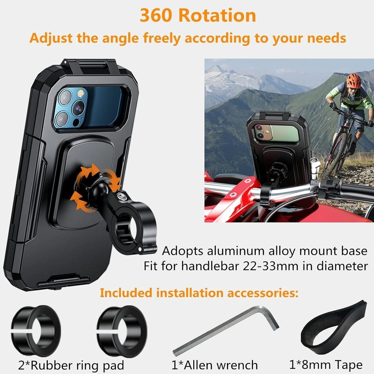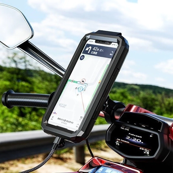 -IP66 resistente al agua: el soporte ofrece un diseño totalmente cerrado que puede proteger perfectamente su teléfono en días lluviosos mientras conduce, tiene reservado un agujero con una tapa impermeable, que es muy conveniente para cargar o enchufar los auriculares