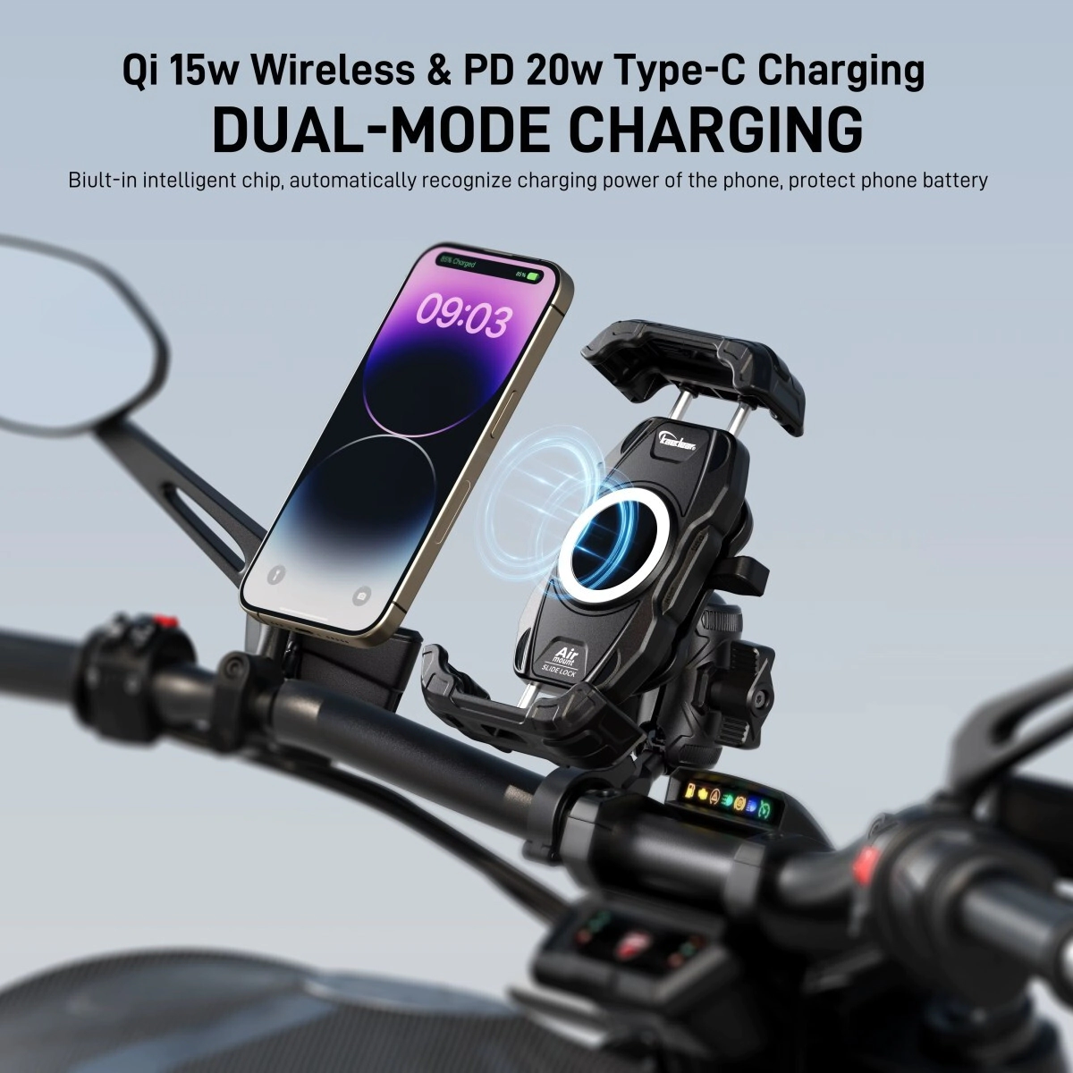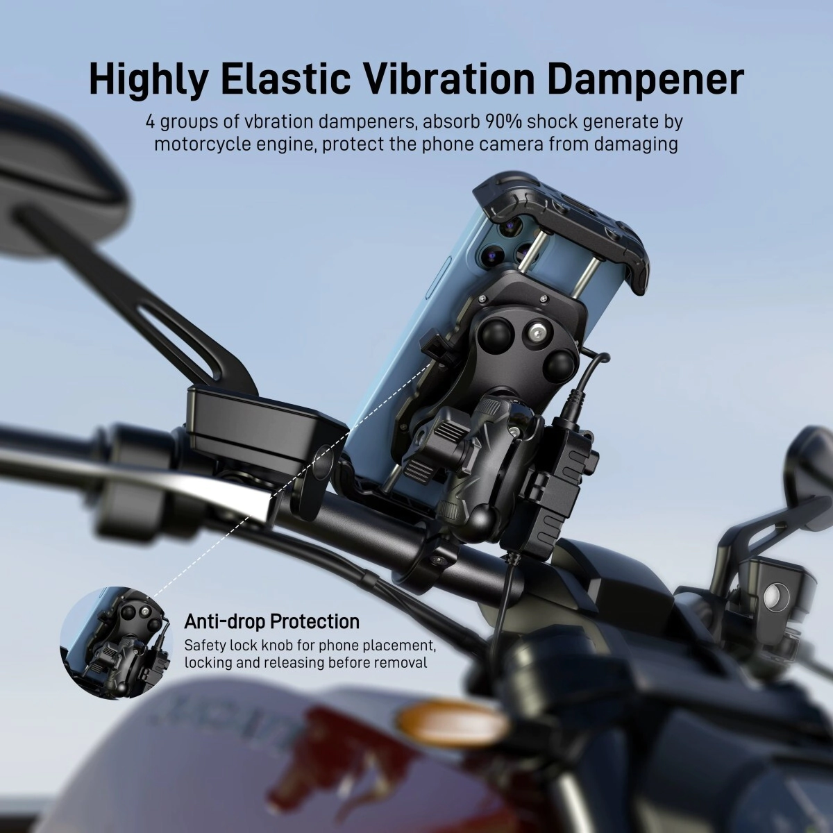 -Posee un soporte con suspensión neumática integrado que absorbe las vibraciones y protege la cámara de tu teléfono.