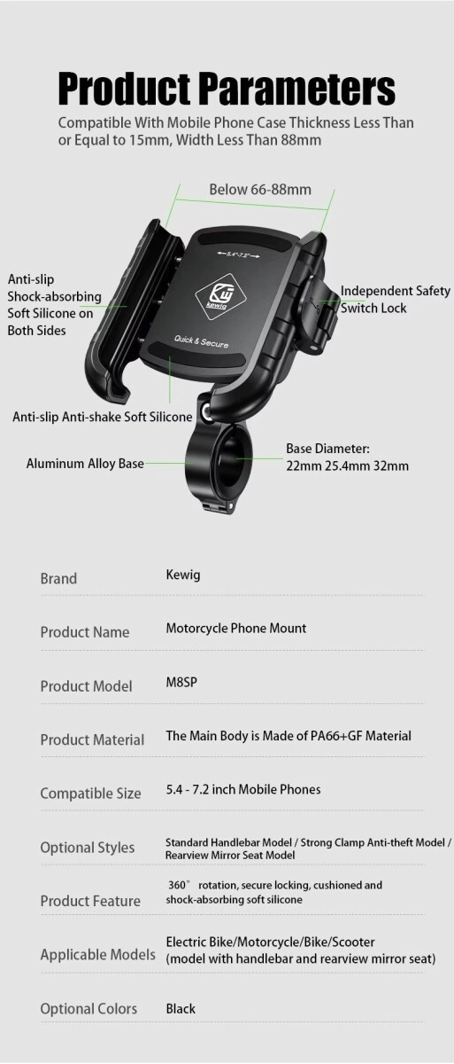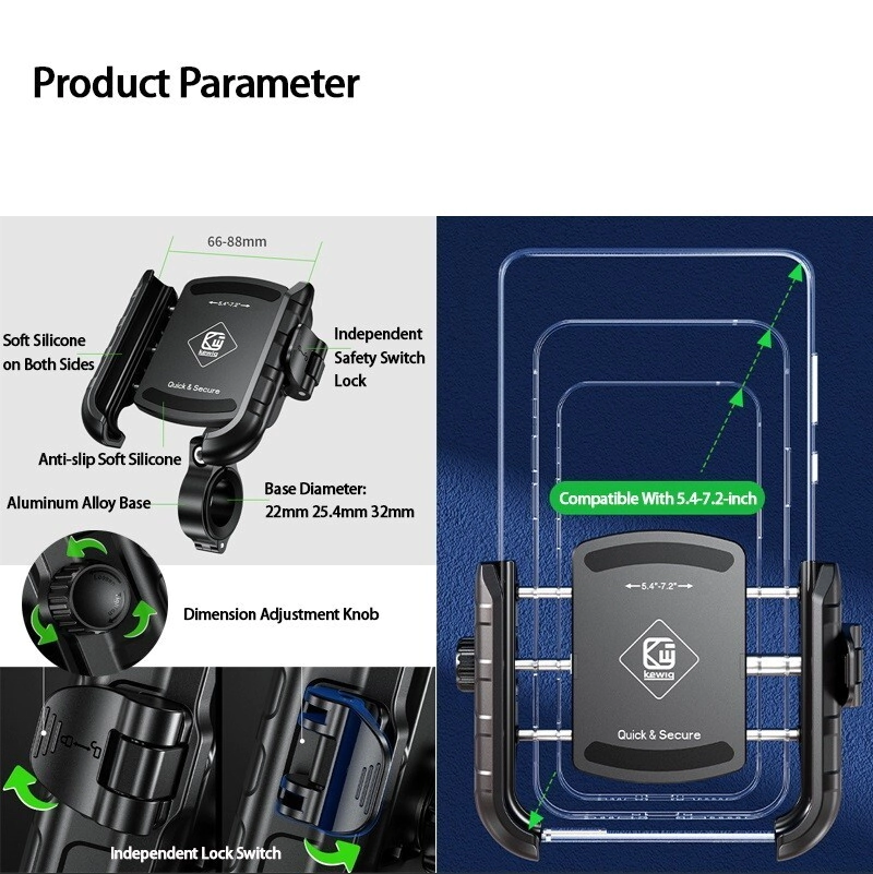 -Amplia compatibilidad: este soporte universal para teléfono de bicicleta puede adaptarse a teléfonos de 5.4 a 7.2 pulgadas, el grosor inferior de 22-32mm, el clip del manillar es adecuado para varios tipos de bicicleta, motocicleta, utv, carrito de golf, cochecito, carrito de compras, scooter eléctrico, bicicleta interior, cinta de correr, etc.