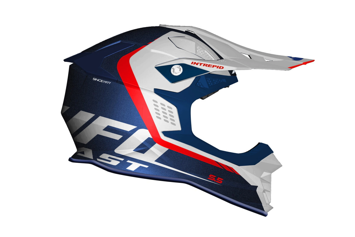 El casco de motocross Intrepid de UFO Plast, diseñado para los pilotos más exigentes, posee excelentes características técnicas y mecánicas