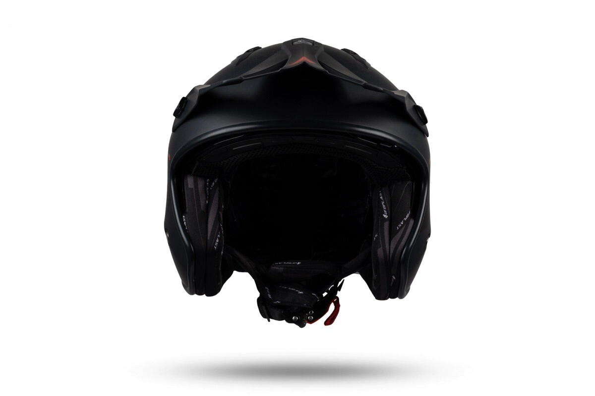 El parasol retráctil con cursor y el pico del casco MX extraíble garantizan una excelente visibilidad en todas las condiciones. Los interiores en tejidos hipoalergénicos completamente extraíbles y lavables, combinados con el eficiente sistema de ventilación equipado con dos tomas de aire superiores ajustables, dos extractores laterales y dos extractores traseros, garantizan una frescura extrema en cualquier temporada. La hebilla de liberación rápida con trinquete micrométrico ofrece la máxima facilidad de uso.