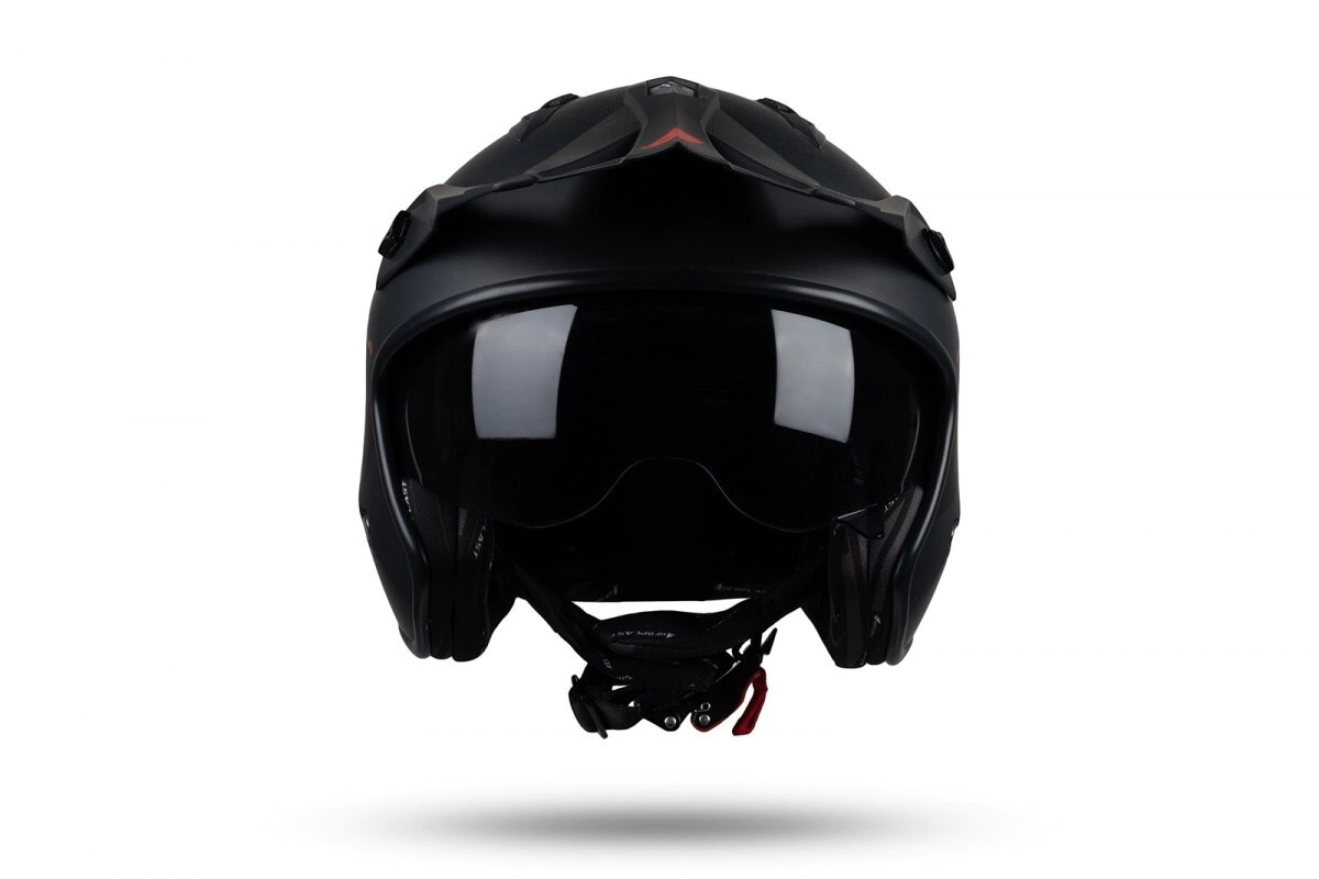 El parasol retráctil con cursor y el pico del casco MX extraíble garantizan una excelente visibilidad en todas las condiciones. Los interiores en tejidos hipoalergénicos completamente extraíbles y lavables, combinados con el eficiente sistema de ventilación equipado con dos tomas de aire superiores ajustables, dos extractores laterales y dos extractores traseros, garantizan una frescura extrema en cualquier temporada. La hebilla de liberación rápida con trinquete micrométrico ofrece la máxima facilidad de uso.