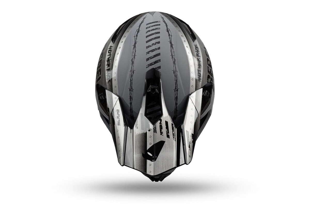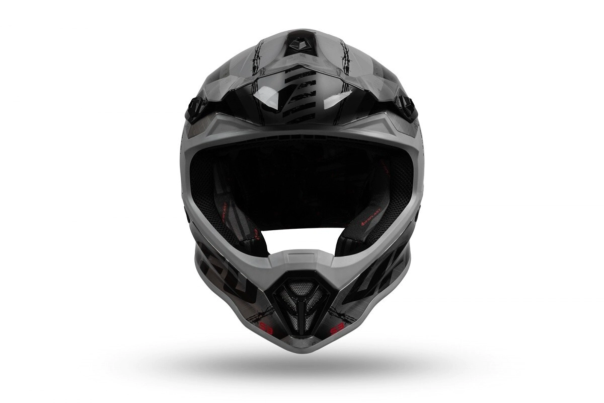 Un casco off-road con acabados extremadamente refinados, fácil de poner y quitar, extremadamente cómodo durante su uso gracias al sistema de ventilación con extractores de aire traseros para una excelente distribución del aire que garantiza una prolongada sensación de sequedad.