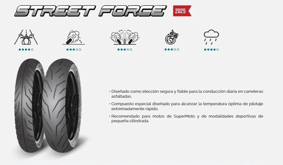 Diseñado como elección segura y fiable para la conducción diaria en carreteras asfaltadas.