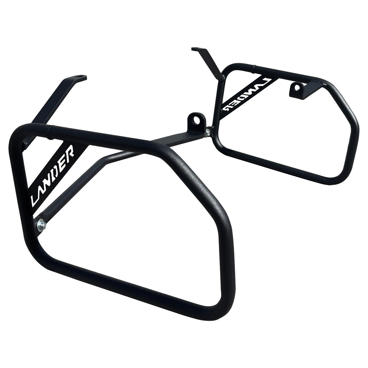 Diseñado para soportar las principales maletas laterales disponibles en el mercado, está fabricado en acero al carbono de alta calidad y acabado con pintura epoxi, lo que garantiza un mejor acabado y una alta durabilidad. Cuenta con un refuerzo trasero que le confiere gran robustez y protege la motocicleta en caso de caída.
