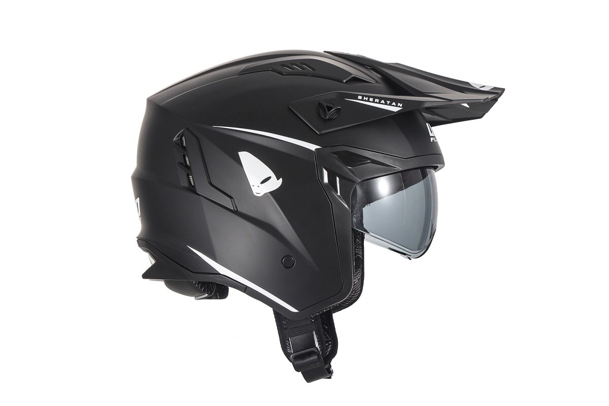 Sheratan es un casco jet con un diseño feroz inspirado en las líneas de motocross pensado para moverse con comodidad y seguridad con estilo y máximo confort.