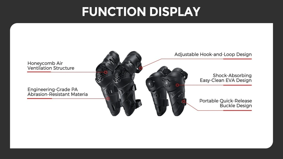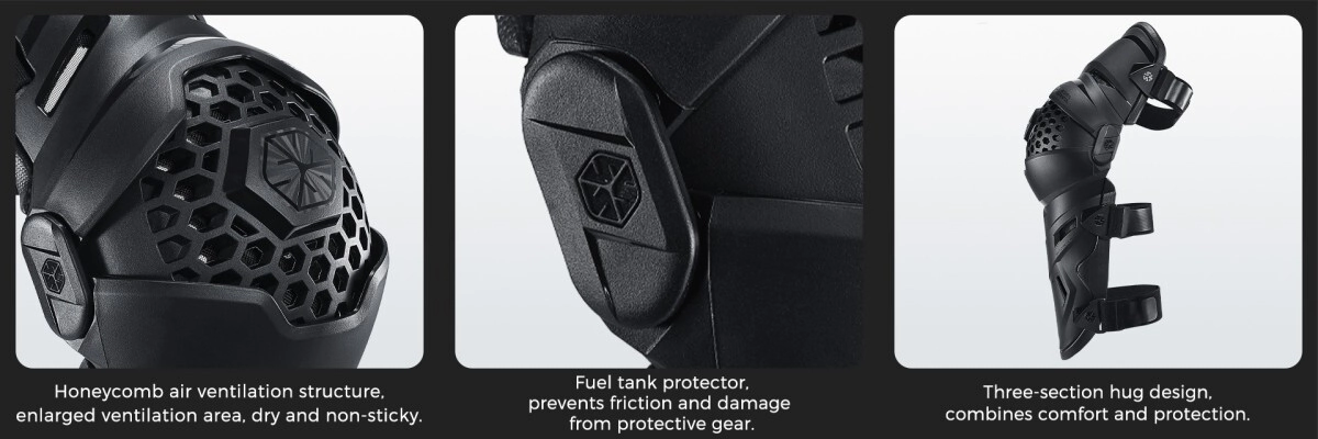 ? Protección de tres capas: Capa exterior de PA de ingeniería resistente a impactos + capa intermedia de panal que dispersa la energía + forro amortiguador de EVA que absorbe la energía; disipa gradualmente las fuerzas de impacto para proteger rodillas y codos.