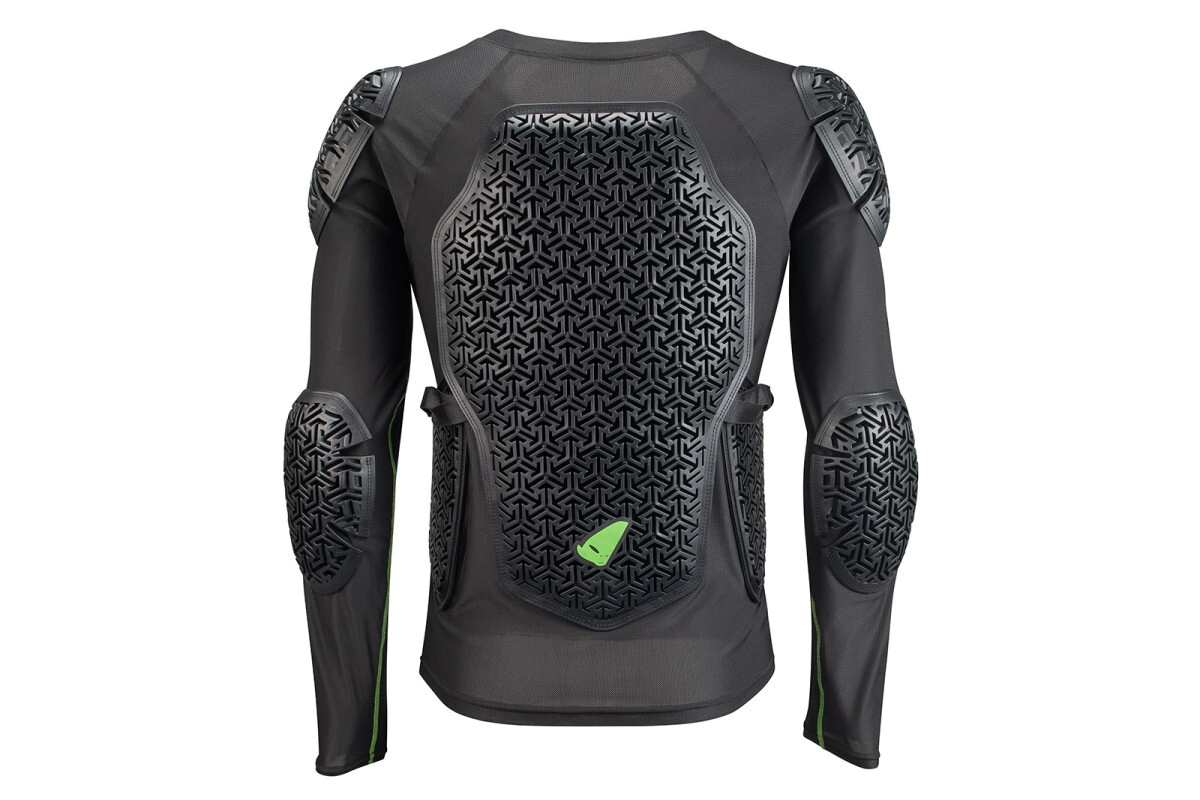 Pechera CORSAIR con estructura en tejido elástico perforado, totalmente transpirable y ventilado, y protecciones externas en PU para una defensa eficaz contra los impactos.