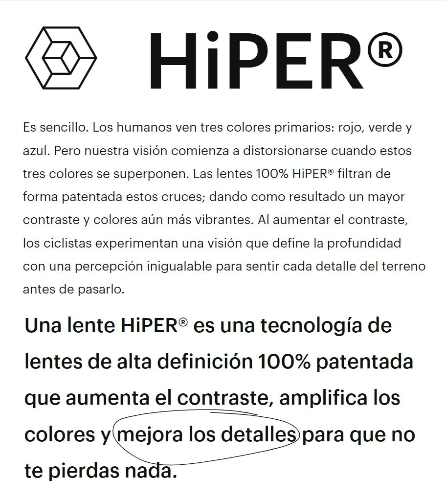-También disponible con lente Híper que define el contraste y lente PEAKPOLAR.