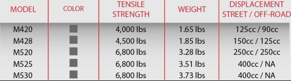 Cuando elija cadenas RK no selladas, asegúrese de que la cadena que elija tenga una CC adecuada para las CC de su motocicleta.