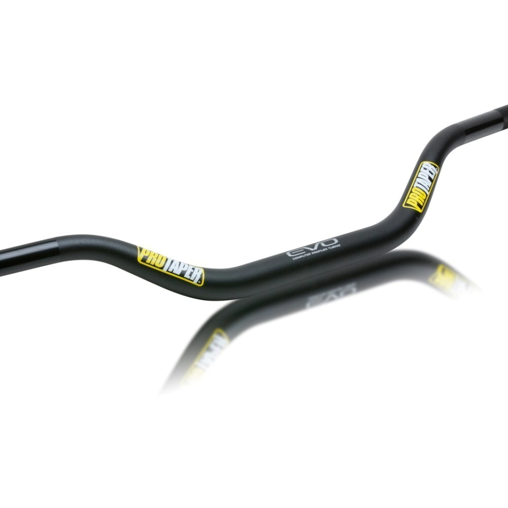 El manubrio EVO es el modelo insignia de ProTaper sin refuerzo transversal. Este diseño proporciona mayor flexibilidad y absorción de impactos en comparación con los manubrios convencionales, ofreciendo al piloto una mayor comodidad y menor fatiga sin sacrificar resistencia. Fabricado con una aleación de aluminio de la serie 7000 de primera calidad y un diseño de pared de 4 mm de grosor perfilado por computadora, el manubrio EVO es hasta un 25% más ligero y un 45% más resistente que los manubrios de la competencia.