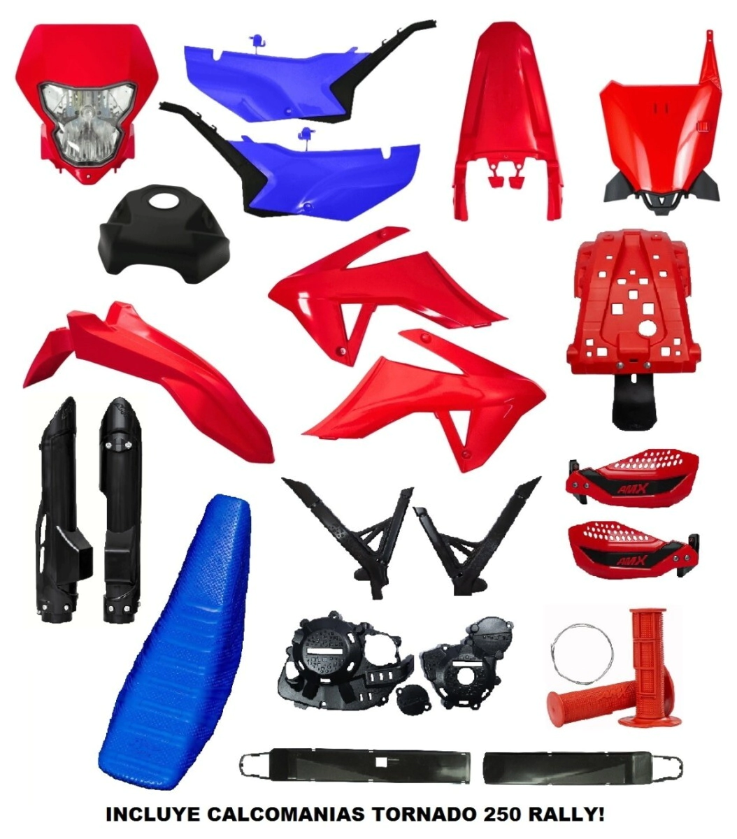 KIT PLASTICOS FULL RALLY P/TORNADO 250 C/ FARO, PORTANUMERO, PROTECCIONES Y CALCOMANIAS AMX